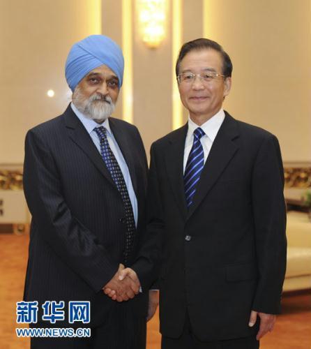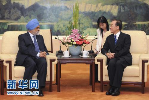 Chinese Premier Wen Jiabao is meeting with Montek Singh Ahluwalia, deputy chairman of the Planning Commission of India. [Xinhua]