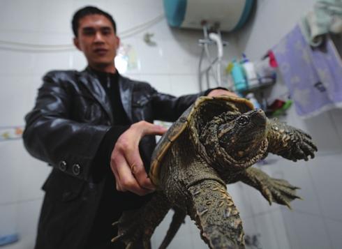 Though Xiao had no knowledge about the turtle, he decided to buy it for 1,000 yuan (US$156.89). Later when he wanted to free the turtle in a pond, a neighbor informed him that it might be an alligator snapping turtle, which is very dangerous and harmful to the environment.