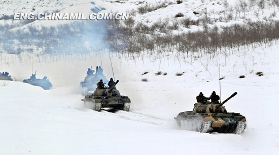 It is right time to conduct training when the Tianshan Mountains is covered by accumulated snow. Recently, an armored regiment under the Xinjiang Military Area Command (MAC) of the Chinese People's Liberation Army (PLA) took its troops to the snowy Tianshan Mountains to practice maneuvering, coordination, protection and resistance in lifelike battlefield environment set in complicated area, so as to enhance its troops' mobile operation ability in arctic-alpine mountainous area.