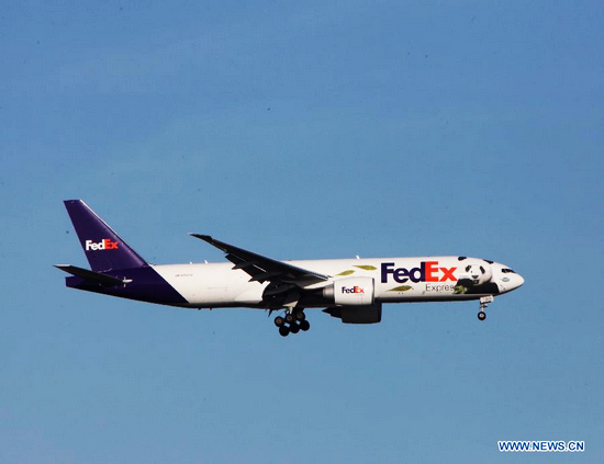A chartered plane carrying two giant pandas from southwest China's Sichuan Province arrives at De Gaulle Airport in Paris Jan. 15, 2012.