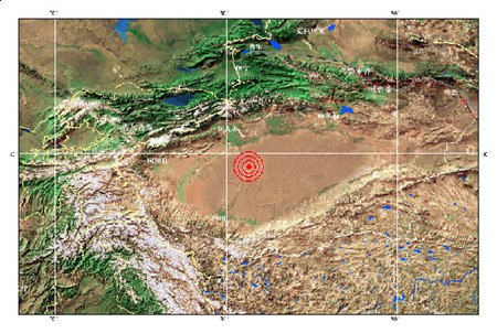 The epicenter, with a depth of 30 kilometers, was at 39.4 degrees north latitude and 81.3 degrees east longitude.