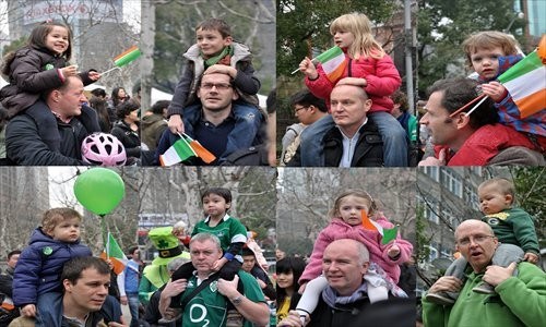 Irishman Brian Irwin has been working in Shanghai as an IELTS examiner for 14 years and has never missed celebrating St Patrick's Day. This year he brought his family to enjoy the day at the park.
