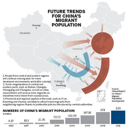 Zhang Yi, a demographics expert at the Chinese Academy of Social Sciences, said around 75 percent of the floating population in big cities are migrants who leave rural areas to find manual jobs in cities.