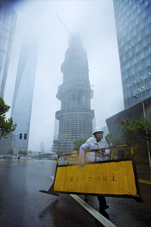 The typhoon was heading toward Hangzhou, Zhejiang Province, early Wednesday, but the storm was already buffeting Shanghai with gales that exceeded 105 kilometers per hour in the city's southernmost districts of Jinshan and Fengxian, according to the Shanghai Meteorological Bureau. The city center endured winds of up to 90 kilometers per hour between 12 pm to 2 pm.