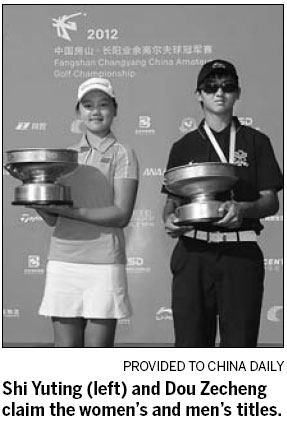 After completing the third round with a lead of seven strokes, Zou said he only needed an even-par performance in the final round to win. Better than that, Dou shot a one-under 71 for a total of 281 strokes and victory in China's highest-level amateur tournament, which comprises the national amateur champions and those ranked among the top 30 in the official rankings of the China Golf Association.