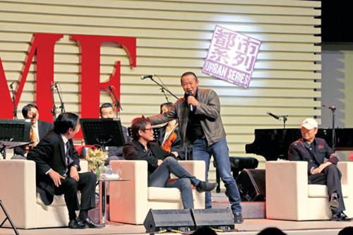 Cui Jian, the "godfather" of Chinese rock 'n' roll; Lo Ta Yu, known as the "Chinese Bob Dylan"; Tan Dun, one of China's most controversial contemporary musicians; and Yu Long, founder and artistic director of the Beijing Music Festival, gave a crossover talk and performance on Monday night at Sanlitun Village.