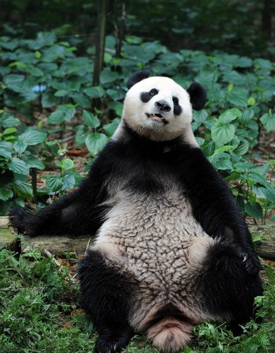 Chinese panda Jiajia take a rest at the new Singapore River Safari,Nov 5, 2012. [Photo/Xinhua]