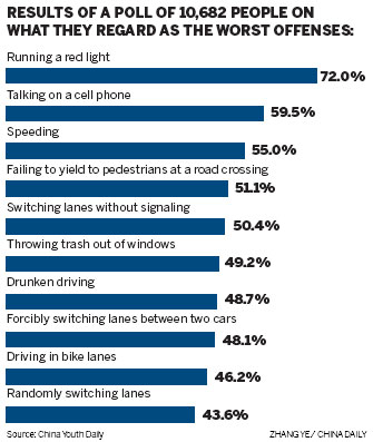 The Ministry of Public Security's traffic management division and China Youth Daily conducted the poll last week.