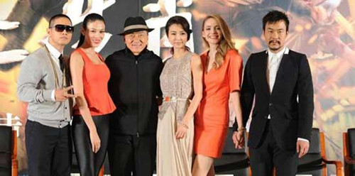 (L - R) Actor Steve Yoo, actress Zhang Lanxin, actor Jackie Chan, actress Yao Xingtong, actress Laura Weissbecker and actor Liao Fan attend 'Chinese Zodiac' press conference at Jackie Chan Museum on December 11, 2012 in Beijing, China.