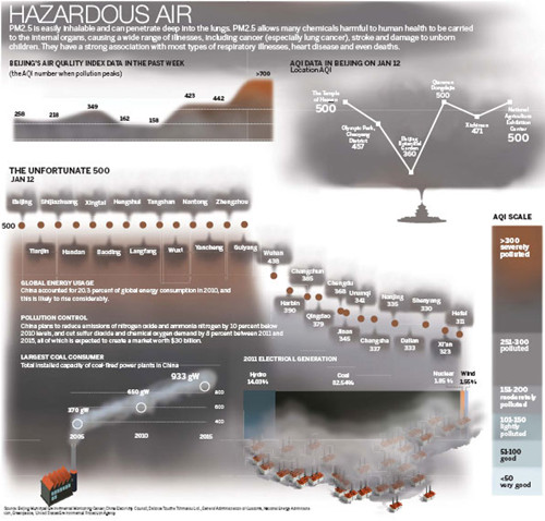 Since the start of the month, 74 large cities in China have provided daily readings of PM2.5 that are available to the public. As the data becomes more widely available, China is working on a national surveillance and risk-assessment network on the health impact of PM2.5, said Xu Dongqun, deputy director of the institute of environmental health and related product safety at the Chinese Center for Disease Control and Prevention.