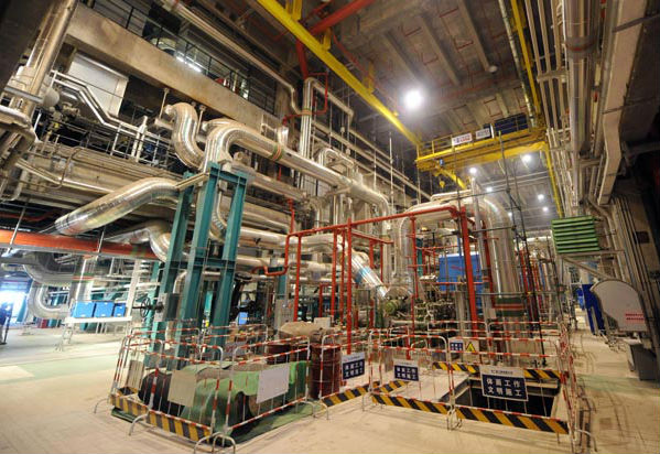 The interior part of the No.1 power generation unit at Hongyanhe nuclear power station near Wafangdian in Northeast China's Liaoning province, Feb 19, 2013. It is the first nuclear power plant and largest energy project in Northeast China. Construction of the first phase of the project, which features four power generation units to be built at a cost of 50 billion yuan ($7.96b), began in 2007 and is expected to be completed by the end of 2015. The four units will generate 30 billion kilowatt-hours (kwh) of electricity annually.. Construction of the second phase of the project, which features two power generation units to be built with an investment of 25 billion yuan, started in May 2010 and is expected to be completed by the end of 2016. The power plant will generate 45 billion kwh of electricity after it is fully completed in 2016. [Photo/Xinhua]