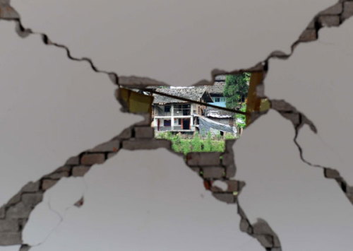 A damaged house in Taiping township, Lushan county, Southwest China's Sichuan province on April 24. Ninety-nine percent of the houses in Taiping township were damaged in the magnitude-7 earthquake which hit Sichuan on Saturday morning, leaving so far 196 dead and 21 missing. [Photo by Wei Xiaohao/Asianewsphoto]
