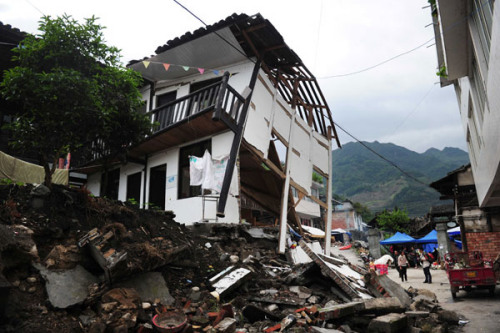 A damaged house in Taiping township, Lushan county, Southwest China's Sichuan province on April 24. Ninety-nine percent of the houses in Taiping township were damaged in the magnitude-7 earthquake which hit Sichuan on Saturday morning, leaving so far 196 dead and 21 missing. [Photo by Wei Xiaohao/Asianewsphoto]