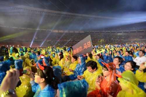 Audience say farewell to former Alibaba CEO Ma Yun at a ceremony in a sport stadium in Hanghzou, Zhejiang province, May 10, 2013. [Dong Xuming / For China Daily]