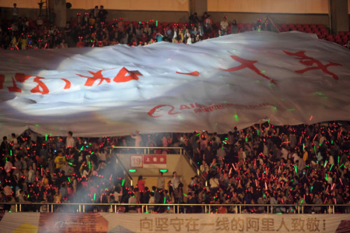 Audience say farewell to former Alibaba CEO Ma Yun at a ceremony in a sport stadium in Hanghzou, Zhejiang province, May 10, 2013. [Dong Xuming / For China Daily]