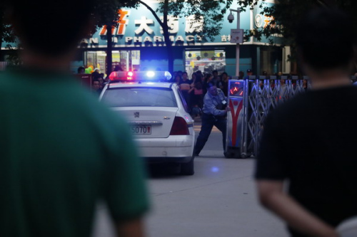 Police are called to the No 9 Hospital of Wuhan in Central China's Hubei province, May 18, where a college student holds a doctor hostage over medical fees. [Photo provided to China Daily]