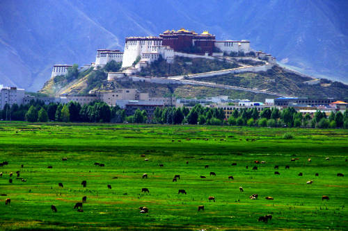 The veiw of Potala Palace from Lhalu wetland [Photo/China Tibet Online]