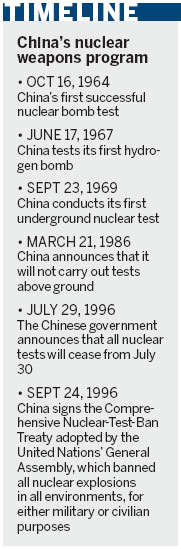 He said the research center was the place scientists analyzed the results of the explosive tests, so there was no need to worry about radioactivity, but he warned against approaching or entering any area where warning signs were displayed. The derelict buildings that once served as laboratories are also out of bounds. "The buildings, which were destroyed before the researchers left, probably still contain radioactivity," said Sun.