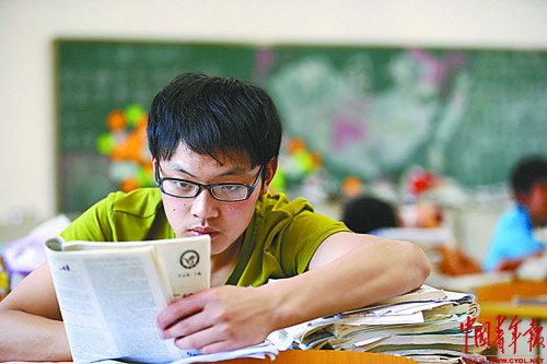 Students prepare for the college entrance examination in Baoxing High School. A 7.0-magnitude earthquake jolted Sichuan on April 20, leaving at least 192 people dead and 23 missing. More than 11,000 people were injured. (Photo/ China Youth News)