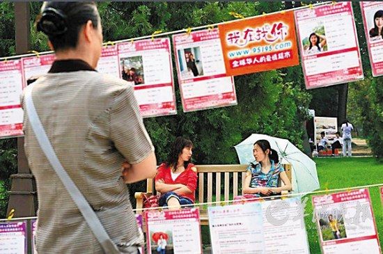 (ECNS) -- The resumes fluttering in the wind, hanging from clotheslines like so much drying laundry, relay the hard facts: age, height, education, property, salary. Welcome to the outdoor marriage market at Shanghai's People's Park, where parents arrive every weekend in search of a match for their unwed daughters.