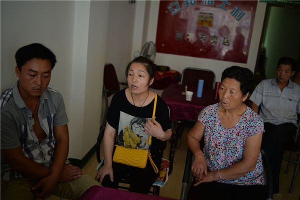 Wang Yanyan (center) says she was tricked into giving up her twin babies by Zhang Suxia, an obstetrician at the Fuping Maternal and Child Health Care Hospital in Shaanxi province, who later sold them. Wu Jiang / for China Daily