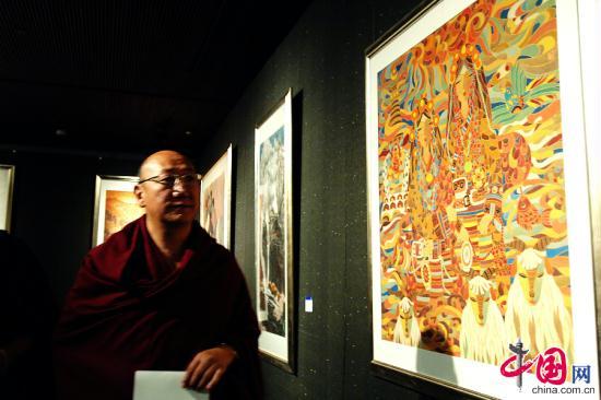 Tibet has become an important theme of contemporary Chinese art.Organizers of the exhibition hope these artworks can be windows on Tibet, through which people can see its history, culture, social development and people' life, besides its attractive landscape.