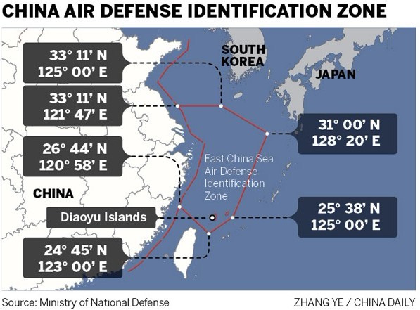 An air defense identification zone is a defensive area of airspace established by a coastal state beyond its territorial airspace, explained Wang Ji, a Chinese expert on domestic and international law from an institution affiliated with China's air force.