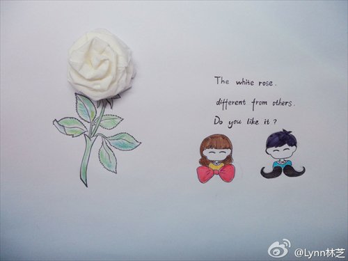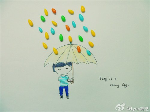 Many of the total 79 works garnered online approval, including an illustration of a Ferris wheel made with clothes pins, raindrops made from colorful jellybeans and napkins folded into a rose.