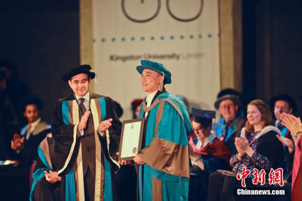 Hong Kong's pop star Eason Chan received the honorary degree presented by the Kingston University in recognition of his extraordinary achievements in the music industry on January 24, 2014.