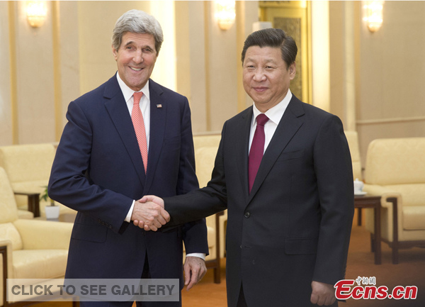 In the meeting at the Great Hall of the People, Xi said he was very glad to see Kerry again as this is the second meeting between them since they came together in Bali, Indonesia, last October.