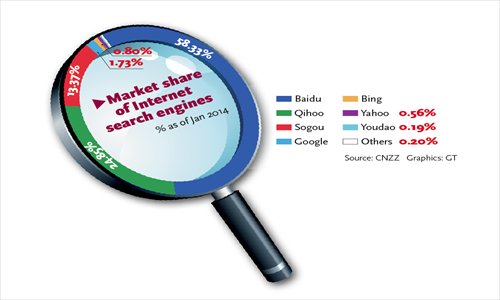 The Beijing-based online security software developer began offering search services in 2012 and has rapidly grabbed a share of the market to reach 24.85 percent in January from 10.53 percent over the same period of 2013, read the data from CNZZ.