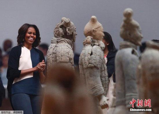 Like other visitors, US First Lady and her family members were amazed stepping into the huge quansit that covers the Terra Cotta Warriors Museum.