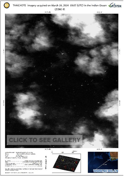 In the largest possible debris find yet, Thailand's Geo- Informatics Space Technology Development Agency said it had spotted in satellite photos about 300 objects about 2,700 km southwest of the city of Perth, western Australia.