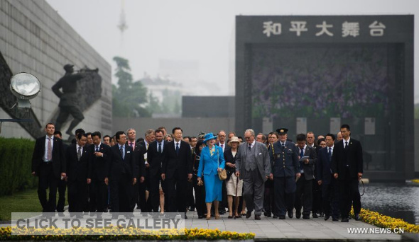 The hall recorded the darkest history of the city. History cannot be changed but lessons can be learned, the Queen said when arriving in Nanjing on Saturday.