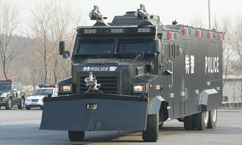 The drill began at 1:00 pm in Qiliqu, Changping district and lasted about three hours. More than 30 special police vehicles and two helicopters were deployed for the exercise.