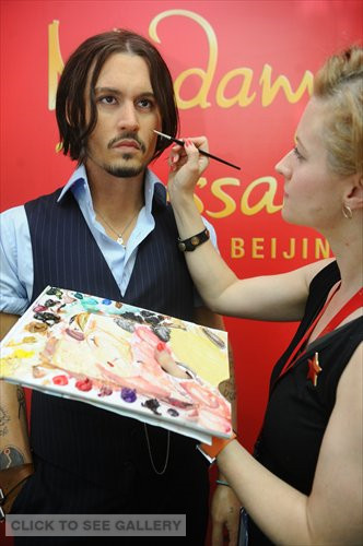 So, which celebrity wax models are most adept at melting visitors' hearts? According to media reports, British actor Robert Pattinson was the most kissed waxwork of 2010. "The queen is always very popular. People love to sit on the throne. Johnny Depp is also popular everywhere around the world," said Walton, who painted the face of the actor's model in Beijing.