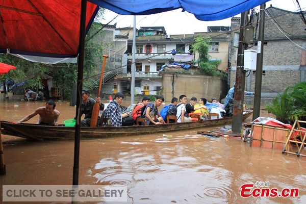 In Fenghuang's neighboring Mayang County, a power substation was flooded. Most of the county seat has been left without electricity since Tuesday. Repair work is under way.