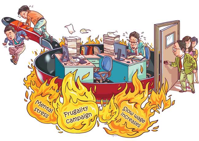 Xia Huan, a civil servant who has worked for six years at the Beijing municipal government, said that officials are facing many problems including slow wage increases, a flawed evaluation system and long working hours.