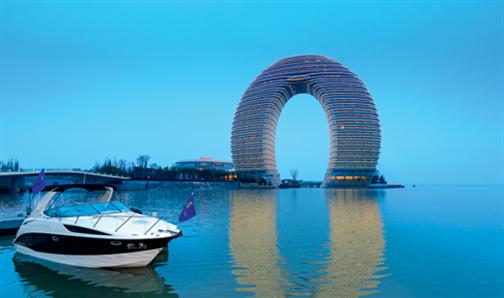 You might not have heard of Huzhou before, but you've probably seen a picture of its most remarkable hotel. While the city has remained in the shade of Suzhou and Wuxi on the other side of Tai Lake, the Ma Yansong-designed Sheraton Huzhou received a considerable amount of International attention for its architecture when the structure was completed in 2012. The 100-metre high hotel stretches up and over a short expanse of water like a giant Slinky – a landmark building on an otherwise unremarkable location.