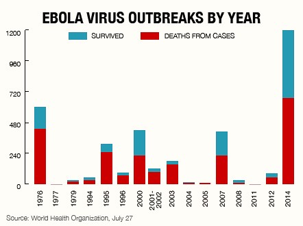 Ebola, which spreads through mucous and other body fluid or secretions such as stool, urine, saliva and semen of infected people, is believed to be very difficult to control.