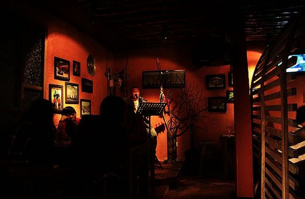 The wooden door curtain inscribed with Tsangyang Gyatso's poem will welcome you to the Damp Bridge Bar.