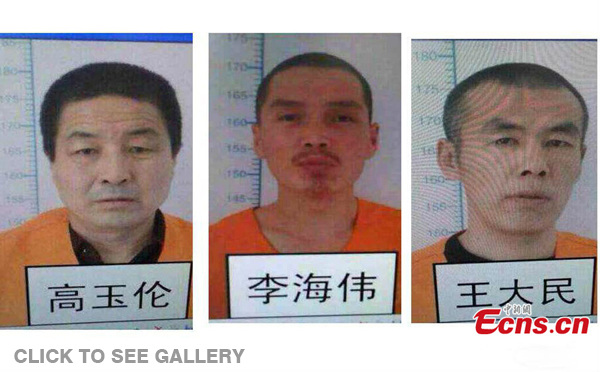 Gao, 50, was in the jail while his death penalty for homicide was being reviewed. Wang, 35, was awaiting his sentence on the charge of intentional injury. Li, 29, was awaiting his sentence for homicide.