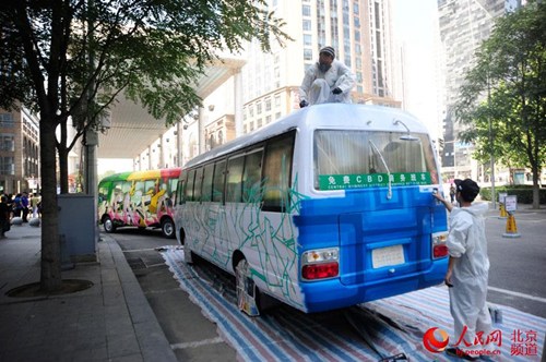 Working in an office can get quite dull sometimes, so artists in Beijing are looking to brighten things up in the city's central business district. Known for its bustling commercial activity, this area of Eastern Beijing is now turning into a giant landscape for artists, who are painting buses and making sculptures to add vibrancy and creativity to the busy district.