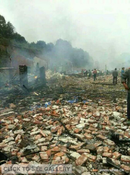 The factory was leveled to ground and the surrounding areas were scattered with debris. Several cars inside the plant were burned down, several nearby houses collapsed and windows of more village houses were shattered.