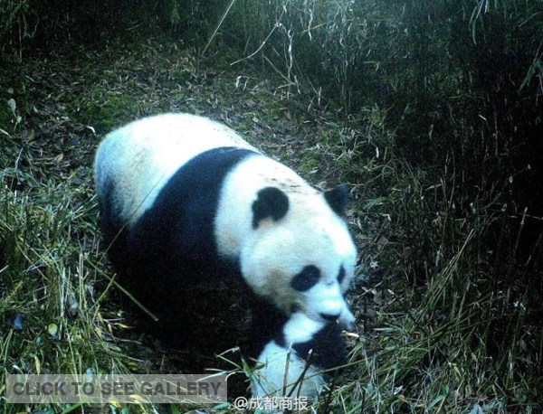 Photos of a wild giant panda wandering with its cub were captured in a nature reserve in the Tibetan-Qiang Autonomous Prefecture of Aba in southwest China's Sichuan province.