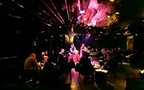 A retro-themed cocktail bar that looks like miniature version of a set from Gone with the Bullets. Located on the corner of Taian and Xingguo Lus, the small space hosts live jazz performances five nights a week and as such the lounge seating around the edges of the venue faces toward a drum kit, mic stands and keyboard (there's no raised stage). There's also a handful of tables under a spectacular vintage-style ceiling decoration that arcs up and over your head from behind where the band plays. It's comfortable and intimate.