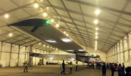 Solar Impulse 2, the first solar-powered aircraft capable of flying day and night, lands in Chongqing, China, on March 31. (Photo: Tan Yingzi/China Daily)