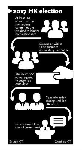 According to Lam, the five to 10 people recommended will be reduced to two to three selected through a secret ballot as official candidates. The 5 million eligible Hong Kong voters will then elect the region's top leader from the candidates through a "one person, one vote" system.