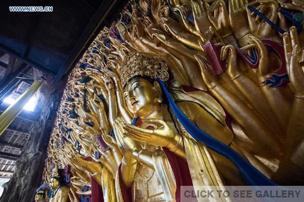 The Qianshou Guanyin sculpture was carved some 800 years ago during the Southern Song Dynasty (1127 to 1279) on Mount Baoding in the present-day municipality of Chongqing.