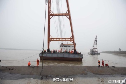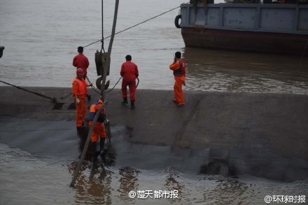2015-06-03Rescuers work on overturned passenger ship in Yangtze River